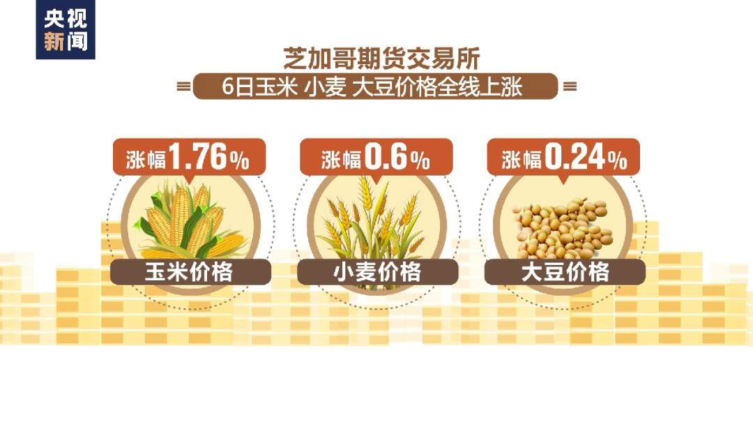 卡霍夫卡水电站大坝遭到破坏,还引发了市场对粮食供应短缺的担忧,导致全球农作物期货价格走高。芝加哥期货交易所6日的玉米、小麦、大豆价格全线上涨。其中玉米价格一度上涨2%,小麦价格一度上涨2.4%。最终,玉米价格涨幅为1.76%;小麦价格涨幅为0.6%;大豆价格涨幅为0.24%。