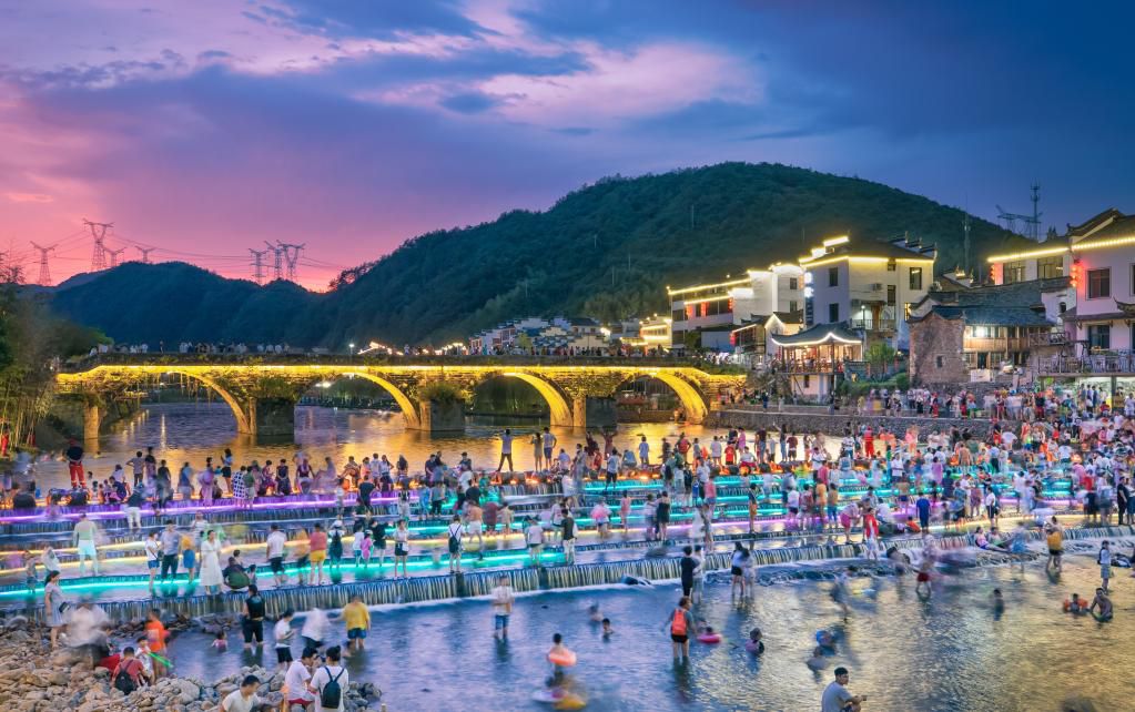 如今,上河村已成为远近闻名的网红打卡点。旅游旺季期间,每天平均有2万名游客从长三角各地前来戏水游玩。村里昔日的水晶作坊变成了主题民宿和农家餐厅。每逢节假日,进出村庄的私家车排成长龙,村里的民宿一房难求。