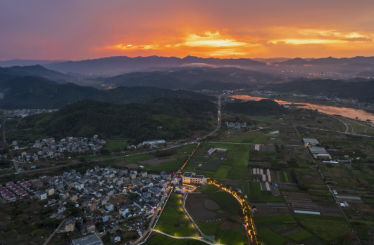 晚霞里的下枫槎村 图源:宁海县纪委监委