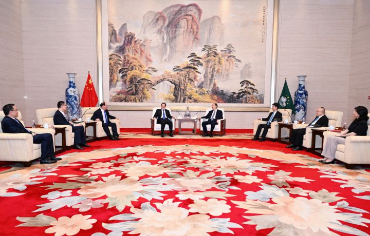 6月27日下午,省委书记、省人大常委会主任易炼红在澳门拜会了中央人民政府驻澳门特别行政区联络办公室主任郑新聪。潮新闻记者 胡元勇摄