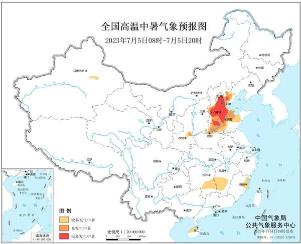 中央气象台4日18时发布高温中暑气象预报:预计,明天白天京津冀及河南和山东部分地区、新疆吐鲁番盆地、陕西中部、福建东北部、江西中部偏西、湖南中部偏东、海南西北部等地较易发生中暑。其中,河北中南部、北京中南部、天津、河南北部、山东西部和北部及陕西中部局地易发生中暑,河北中南部和北京中南部的大部地区以及天津西部、山东西北部地区极易发生中暑。请采取积极有效的防暑降温措施,避免在日光下暴晒,避免高温时段或高温环境中的户外活动。