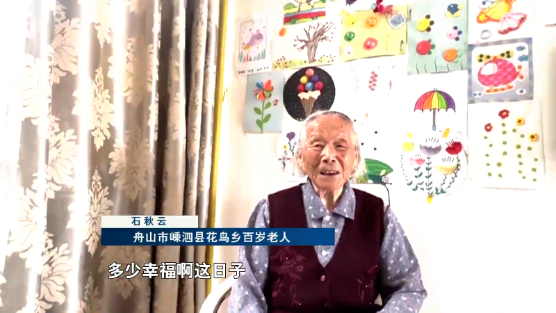 舟山市嵊泗县花鸟乡百岁老人 石秋云:多少幸福啊这日子,吃得好,穿得好。
