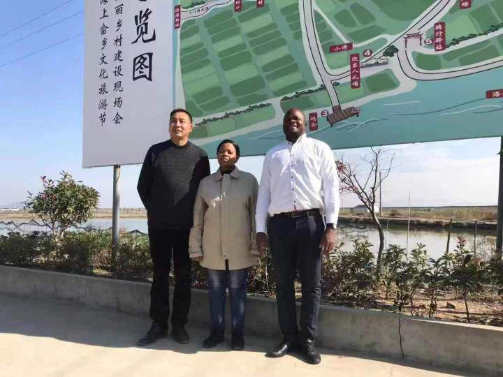 莫桑比克地方领导前来三门涛头村考察,左一为涛头村村委主任林后宜。受访者供图