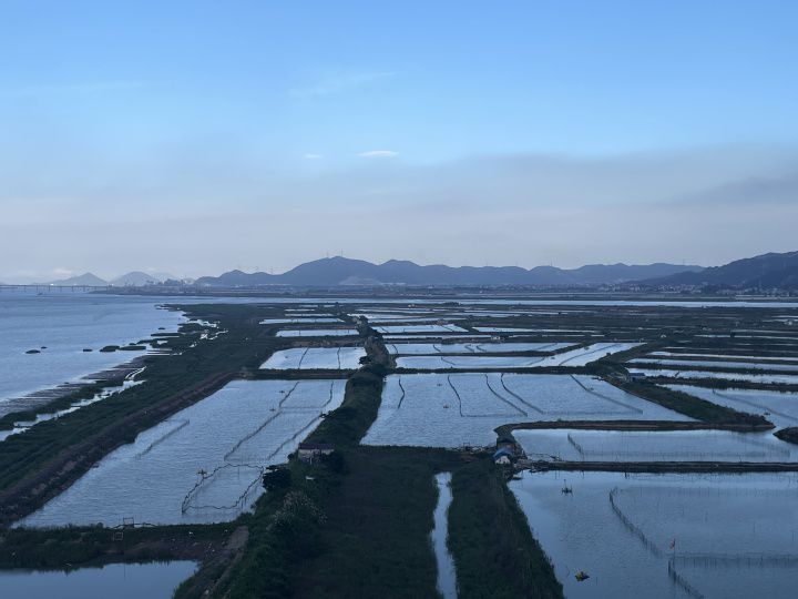 站在三门涛头村观景平台俯瞰养殖塘。记者 徐婷 摄