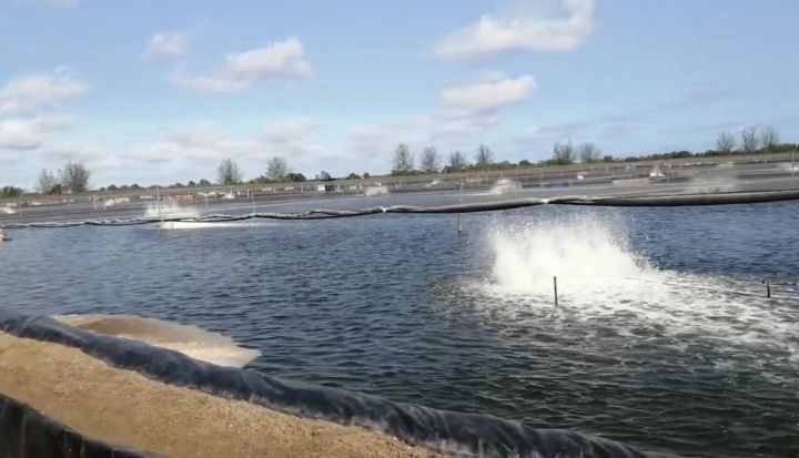 吴伟超则给潮新闻记者展示了莫桑比克养殖塘的航拍视频——近5000亩养殖塘波光粼粼,周围几乎没有城市建筑或工业污染,广袤的土地和热带风貌间,还有员工宿舍、育苗场、冷冻区……放眼望去,一片“蓝海”。