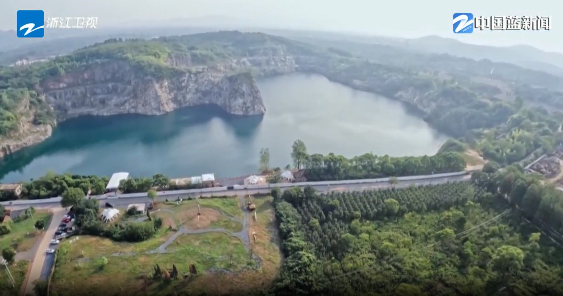 每逢周末,络绎不绝的外地游客都挤进了安吉山沟沟里的红庙村,这里废弃的矿场遗址,摇身变成一汪心形碧泉。
