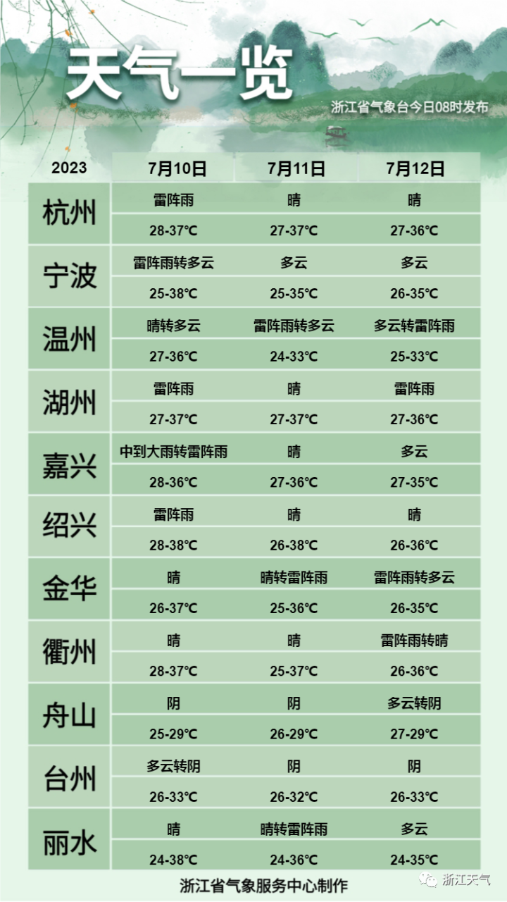 来看看近期浙江天气具体情况: