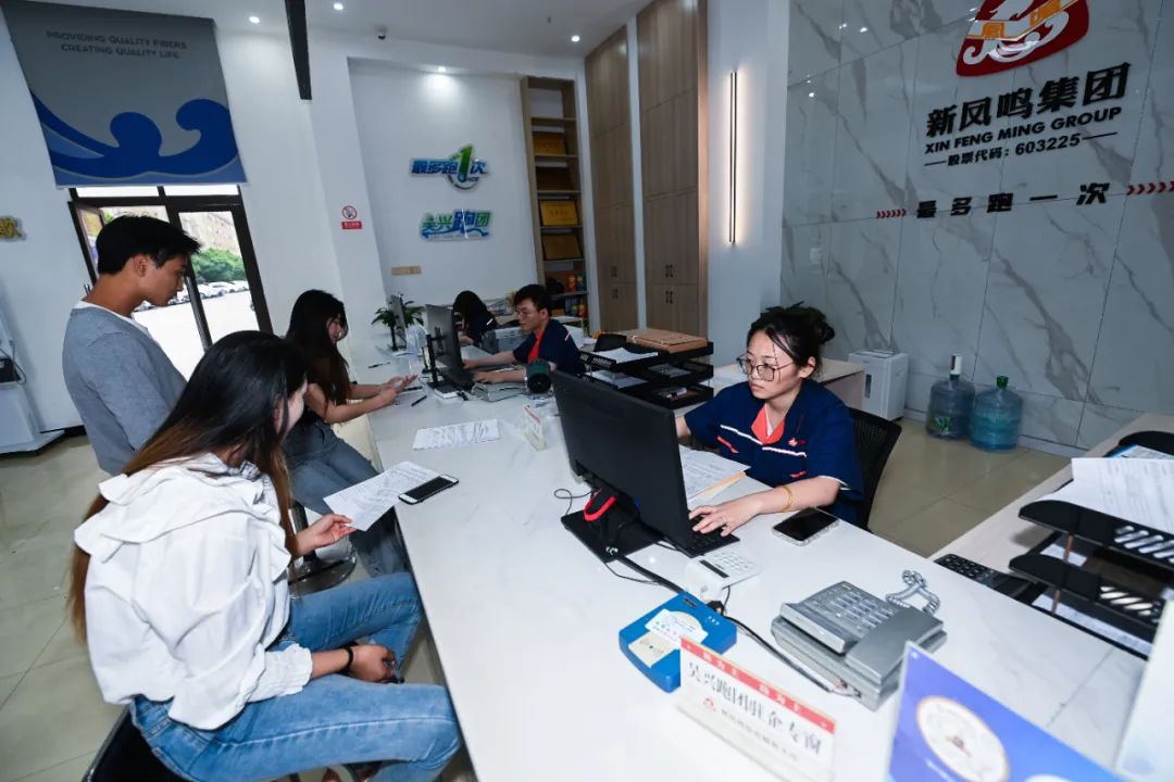 湖州市吴兴区政务办“吴兴跑团”驻企服务专员为企业“上门办”,为企业员工办证办事 图源:新华社