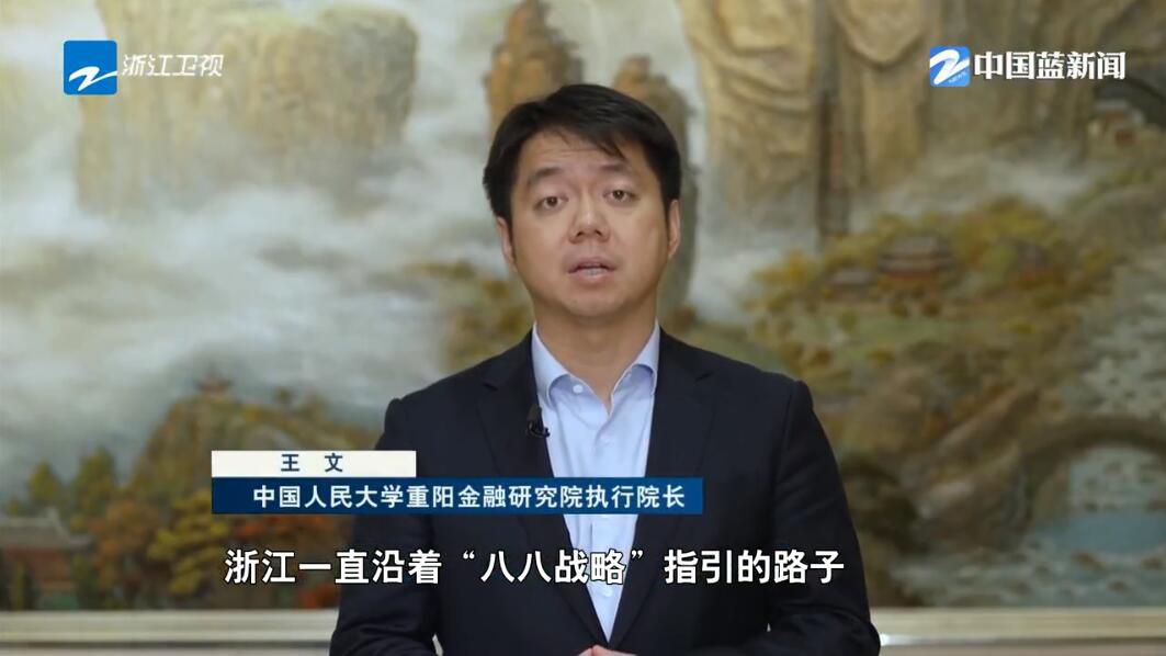 中国人民大学重阳金融研究院执行院长 王 文:浙江一直沿着“八八战略”指引的路子,不断推动自己的发展。在融合着山和海、城和乡、边缘和中心等等方面,把唯物辩证法发挥地淋漓尽致,把优势发挥地更大。