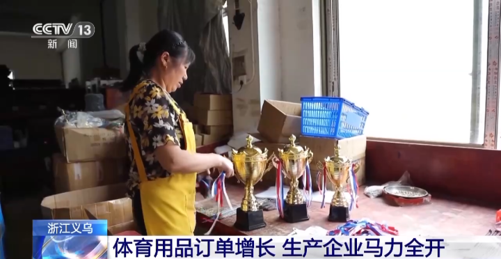 除了亚洲国家体育用品订单正在增多,记者还发现,以往夏天是义乌体育用品出口的淡季,但眼下,“亚运热”带动了民间赛事活动,也让定制类体育用品持续走热。