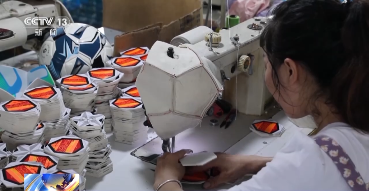 同样的场景,也发生在义乌另外一家企业里。在眼前这个占地两千多平方米的车间内,下料、印刷、翻球、缝球,在一条条流水线上,工人们忙个不停。目前,这家企业的订单生产已经排到了11月份。