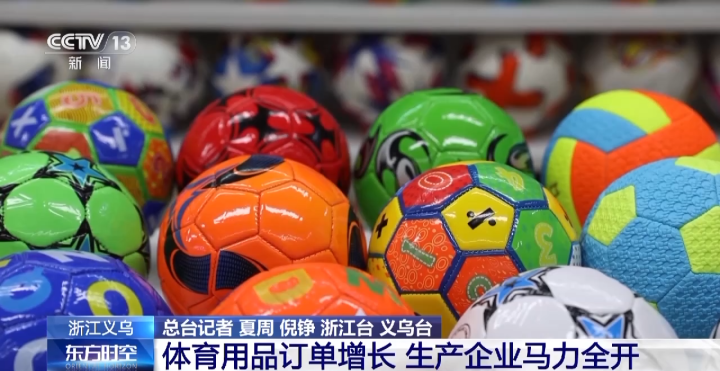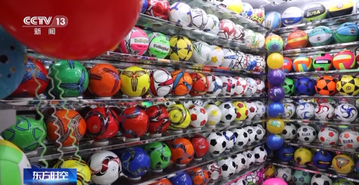 义乌某足球生产企业负责人 郑国群:义乌是个窗口,保持在这里,我们外省有一些加工合作工厂在那里,单子分流出去,往年工厂生产少的,今年也叫他们增加产量,因为单子消化不完。