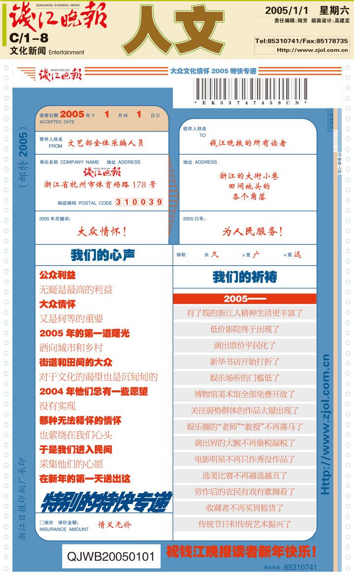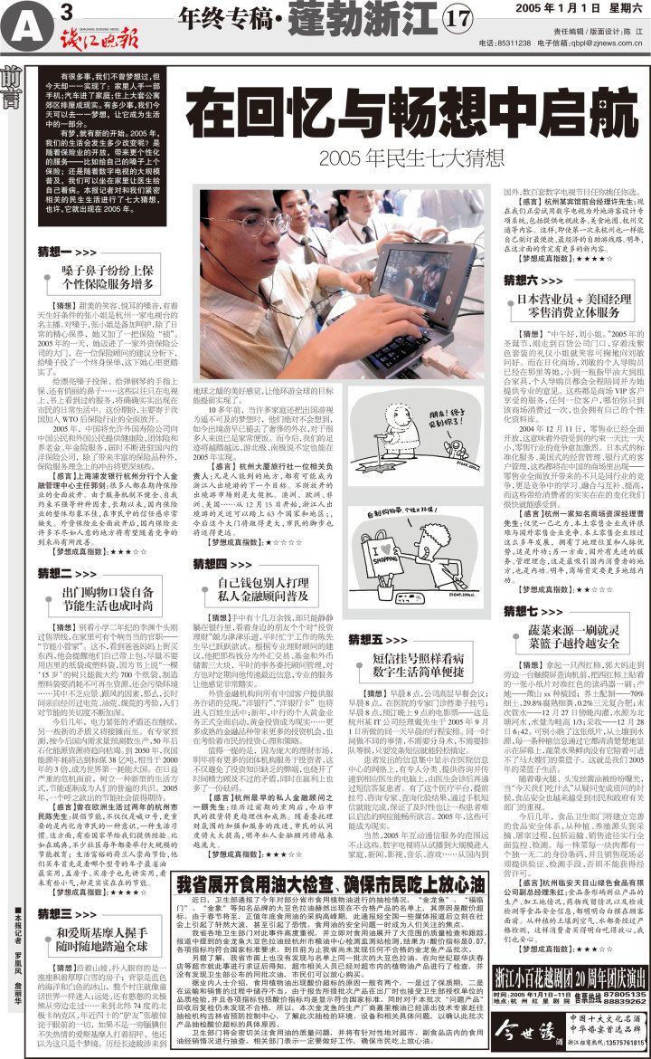 18年前的元旦,钱江晚报以“Hello,我的2005”为主题做了一组大型策划。