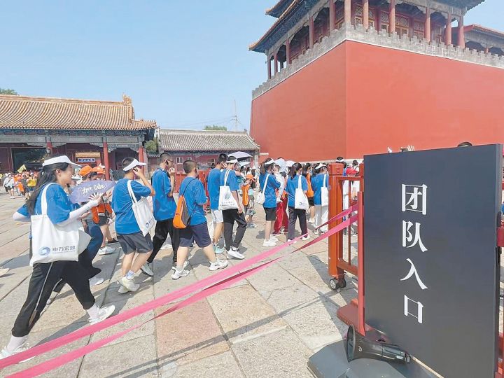 昨天上午,一支未成年人团队通过专用通道排队进入故宫参观。 张琪 摄