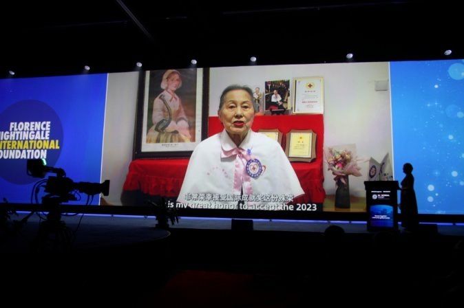 今天上午,“国际成就奖”获得者章金媛女士颁奖大会在北京举行。此前,经国际护士会与弗洛伦萨·南丁格尔国际基金会评选,94岁的中国护士章金媛荣获2023年“国际成就奖”,这是全球护理界及健康领域最负盛名的奖项之一,章金媛是该奖项自1999年设立以来的第一位中国获奖者。