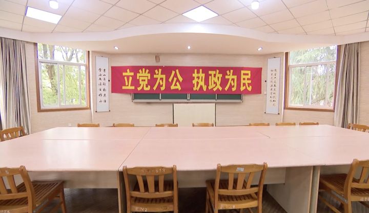 沿着天目高级中学求新楼的台阶拾级而上,二楼正对楼梯口的那间教室,正是习近平同志当年接访群众的第一接待室。里面的布置与当年一模一样,几张课桌一字排开,简单得不能再简单。