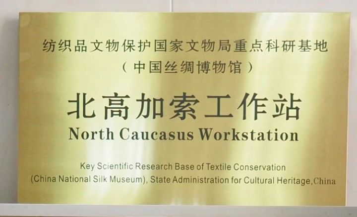 古树身处山中,另一件新时代见证物北高加索工作站铜牌则被悬挂于遥远的草原丝绸之路沿线重镇、俄罗斯斯塔夫罗波尔市,见证的是推动“一带一路”沿线纺织品文物保护事业和科研成果转化工作。