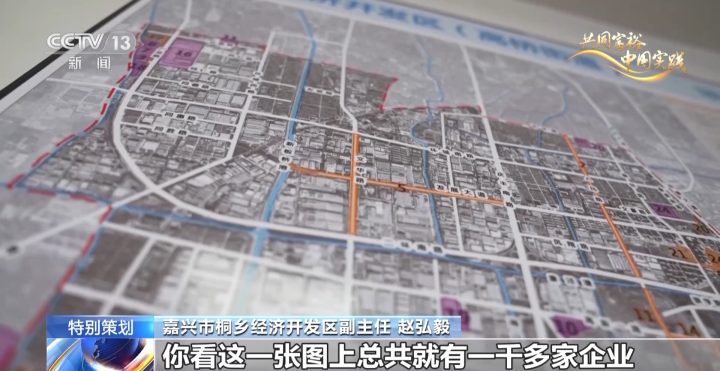嘉兴市桐乡经济开发区副主任 赵弘毅:这是我们桐乡经济开发区整个产业的一个规划布局图,图上总共有一千多家企业。我们工作人员每天奔波于这些企业之间,去了解这家企业有什么,这家企业需要什么。有家企业是做新能源汽车整车的,有家企业是做新能源汽车变速箱的,有家企业是做轮毂的,这三家企业我们认为是可以形成一个上下游的供应链关系,在我们的促成下,近期两家企业已经在互相对接了。