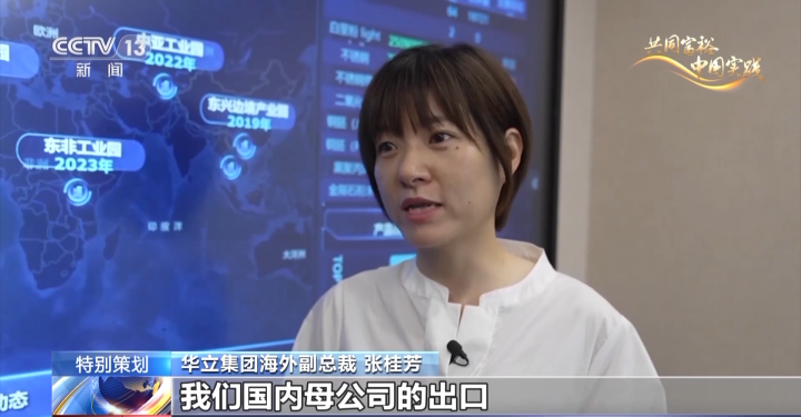 华立集团海外副总裁 张桂芳:我们也发现,在当地(海外)每生产1美元的产品,它其实有0.6美元的产品是通过国内母公司的上游零部件、原材料,关键组件出去的。也就是说,它可以有效间接带动我们国内母公司的出口。