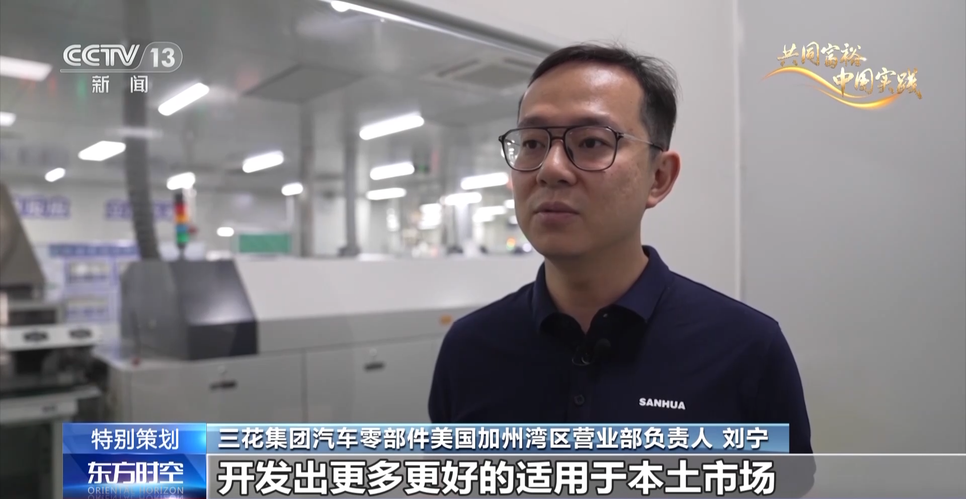 三花集团汽车零部件美国加州湾区营业部负责人 刘宁:在美国设立的这个创新中心,我们能够在当地建立团队,和客户、市场进行频繁接触。我们吸收了很多全球的,在新能源汽车领域先进的理念和技术需求,结合我们自身的技术积累,开发出更多更好的适用于本土市场和全球市场的产品。