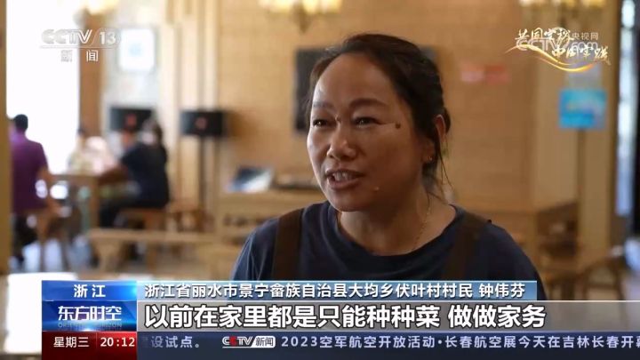 浙江省丽水市景宁畲族自治县大均乡伏叶村村民 钟伟芬:以前在家里都只能种种菜、做家务,别的一分钱都挣不来,现在在家门口(就业)。这里的服务员全部都是我们本村的,五六十岁了,出去打工也没人要,在这里干干服务员一个月还能收入三千,这也很好的。