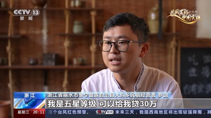 浙江省丽水市景宁畲族自治县大均乡民宿经营者 罗剑:以我的个人(生态信用)等级,我是五星等级,可以给我贷30万,而且我了解了年利率,它是3.85%,算起来是最低的,所以说我就去贷了。
