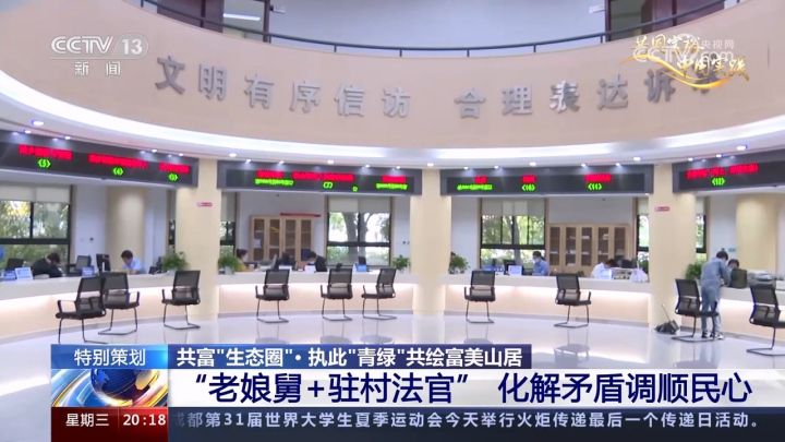 把矛盾纠纷化解在基层、化解在萌芽状态。接地气的“老娘舅”调解形成了工作机制,我们通过一组数据来看看工作成效如何。自2020年以来,安吉县社会治理中心,也就是原来的安吉县社会矛盾纠纷调处化解中心,共处置各类咨询纠纷2.97万件,即时处置率达97.8%,矛盾纠纷化解单件办理效率提高44.2%,群众满意率达99.8%。真正做到让老百姓遇到问题在身边就能有个地方“找说法”,既化解了矛盾,也调顺了民心。