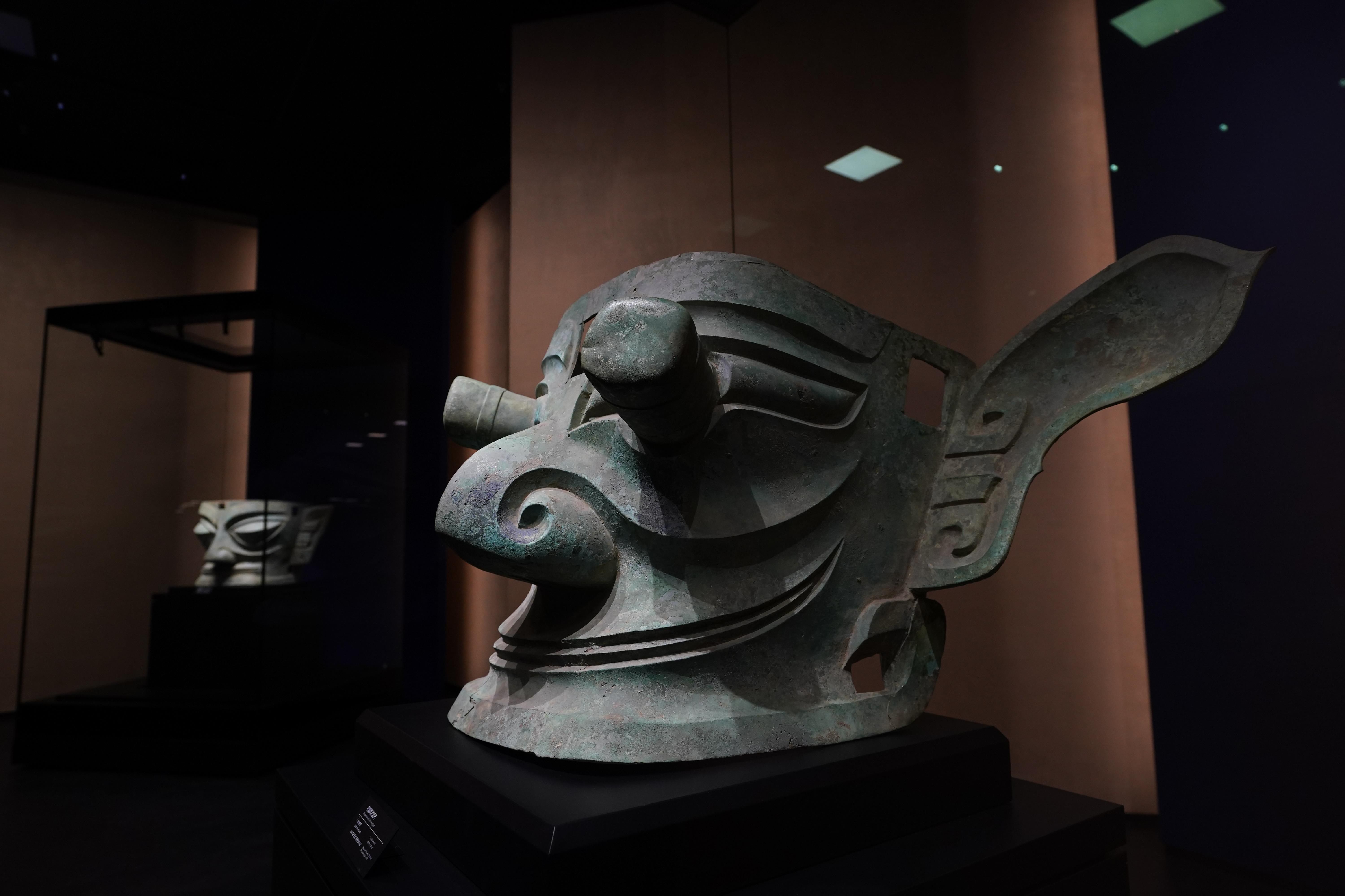 △三星堆博物馆展出的青铜人头像。(总台央视记者范凯拍摄)