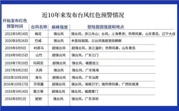 据悉,2016年以来,登陆我国的台风共有48个,但中央气象台只对梅花、巴威、利奇马、山竹、玛莉亚、天鸽、海马、莎莉嘉 、莫兰蒂、妮妲10个台风发布过台风红色预警,其中已有6个被除名(台风被除名的背后是造成特别重大的生命财产损失或人员伤亡)。