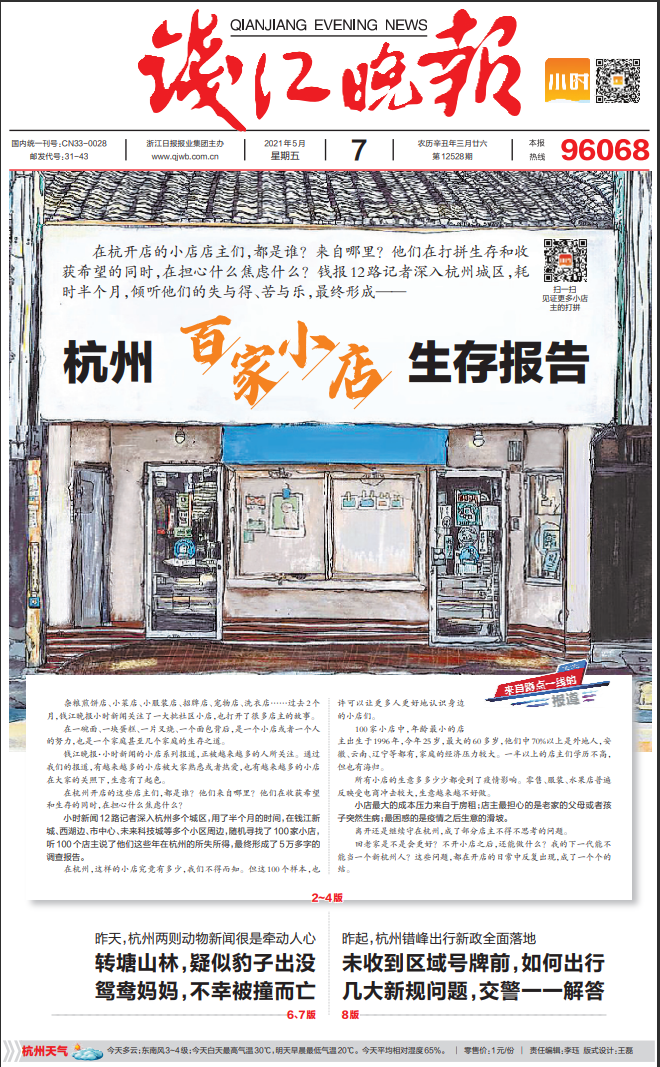 2021年新冠疫情持续,给民生带来的影响不小,作为城市经济社会的细胞,身边的小店尤为步履维艰。从2021年3月7日起,钱江晚报推出系列报道,通过亲历报道、深度调查、社群服务等多种形式,反映疫情下小店正在遭遇的纠结和困境,反映它们的生存状态和蓬勃生命力。