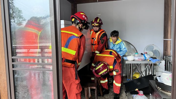 7月23日,受台风“杜苏芮”影响,温州平阳县各乡镇均出现了强降雨,顺溪、青街甚至出现了特大暴雨,由于顺溪镇地势低洼,连续的强降雨导致了顺溪镇积水严重。平阳消防部门陆续接到求助电话,消防救援人员赶赴现场开展营救。