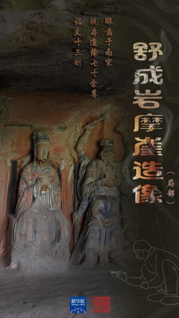 舒成岩摩崖造像雕凿于南宋,是大足石刻内珍贵的道教石刻。造像崖面全长38米、高6.5米,现存造像70余尊、铭文13则。因年代久远,造像存在彩绘起甲、脱落等病害。2017年,大足石刻研究院与意大利威尼托文化遗产集群签署合作协议,合作修复舒成岩摩崖造像。