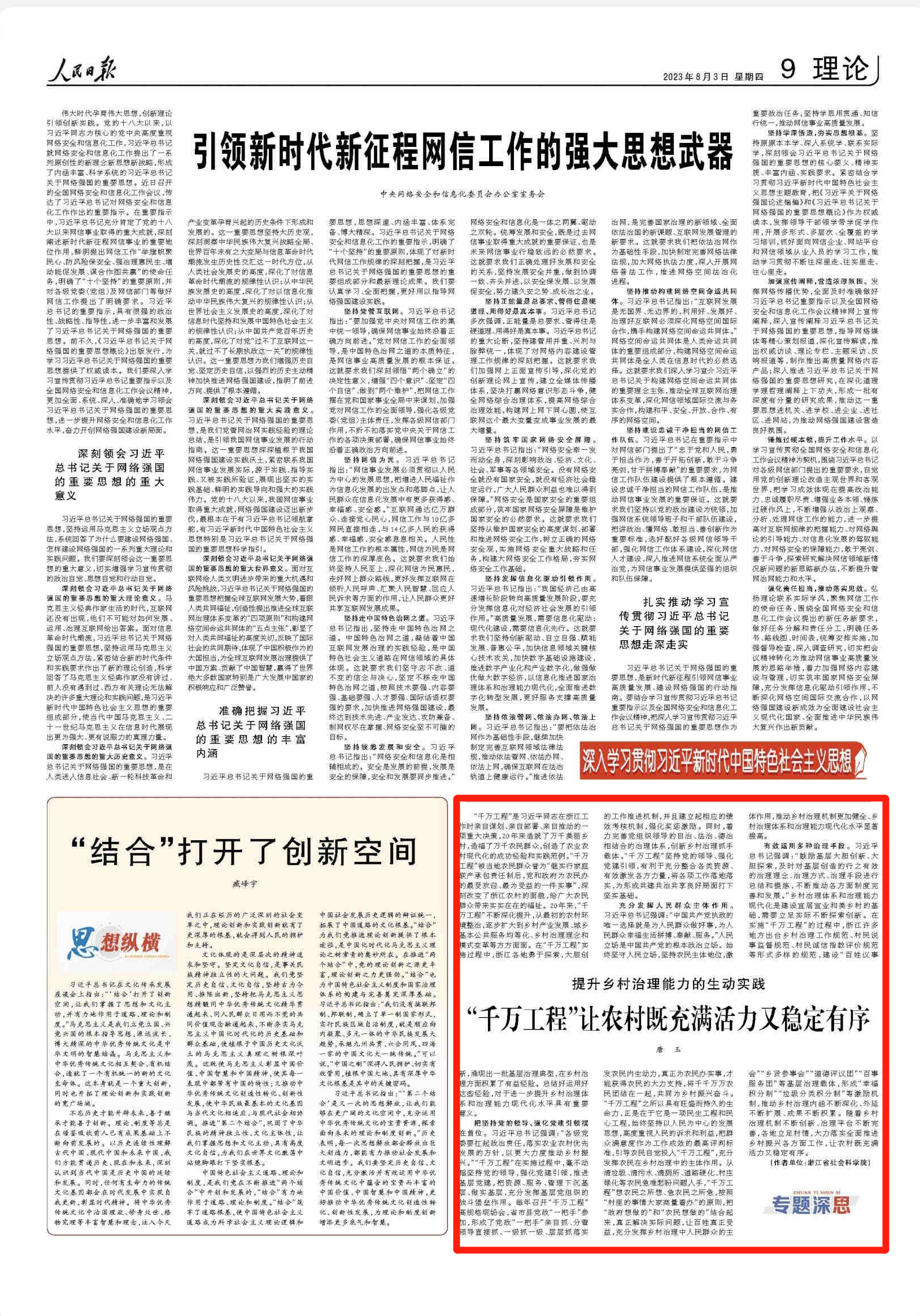 “千万工程”是习近平同志在浙江工作时亲自谋划、亲自部署、亲自推动的一项重大决策,20年来造就了万千美丽乡村,造福了万千农民群众,创造了农业农村现代化的成功经验和实践范例。“千万工程”被当地农民群众誉为“继实行家庭联产承包责任制后,党和政府为农民办的最受欢迎、最为受益的一件实事”,深刻改变了浙江农村的面貌,给广大农民群众带来实实在在的福祉。20年来,“千万工程”不断深化提升,从最初的农村环境整治,逐步扩大到乡村产业发展、城乡基本公共服务均等化、乡村治理理念和模式变革等方方面面。在“千万工程”实施过程中,浙江各地勇于探索,大胆创新,涌现出一批基层治理典型,在乡村治理方面积累了有益经验。总结好运用好这些经验,对于进一步提升乡村治理体系和治理能力现代化水平具有重要意义。