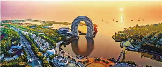 炎炎盛夏,太湖南岸却游人如织。滨湖大道宛如长龙蜿蜒,沿岸芦苇随风摇摆,龙之梦乐园里处处回荡着孩子们的欢声笑语,远处丘陵绵延起伏,大片湿地绿意盎然,近处一轮明月入湖,原来是月亮酒店的倒影随碧波荡漾……