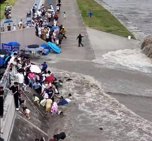这两天,一则短视频刷爆了很多浙江人的朋友圈。视频显示,不少游客在岸边观看钱江潮时,被潮水卷入摔倒。视频中还可见,很多游客爬到江堤的围栏上,甚至不少游客爬到了江堤下方近距离观潮。