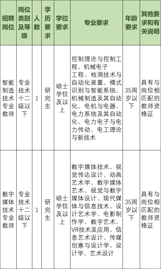 面向社会公开招聘专业教师2名。