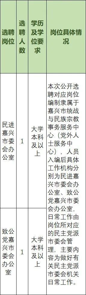 嘉兴市所属各级各类事业单位在编在职工作人员中公开选聘事业编制工作人员2名。
