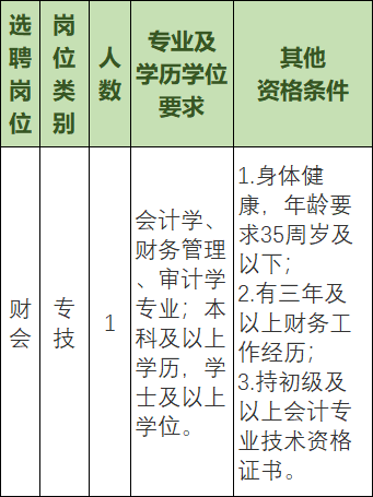 年龄及要求:35周岁以下;具有中级及以上专业技术资格人员可放宽到40周岁。