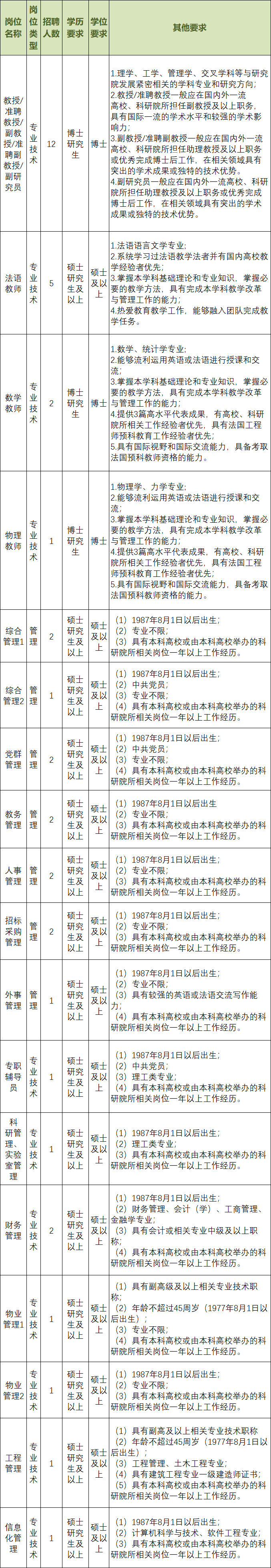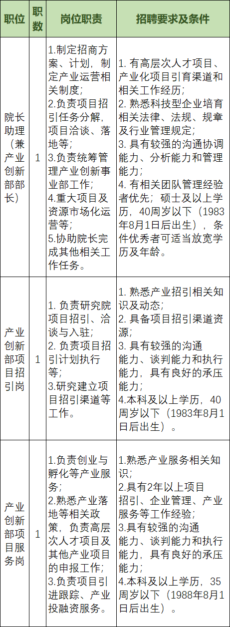 研究院公开招聘专任教师20人(按考核先后顺序招满即止),辅助类岗位工作人员20人。