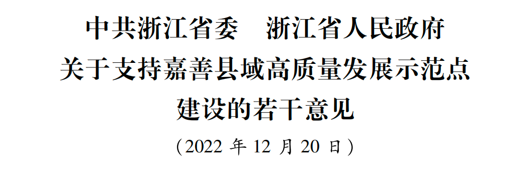 为全面实施国家发展改革委印发的《新发展阶段浙江嘉善县域高质量发展示范点建设方案》,以点带面破解县域高质量发展共性问题,为全国县域高质量发展提供浙江样板,现提出如下若干意见。