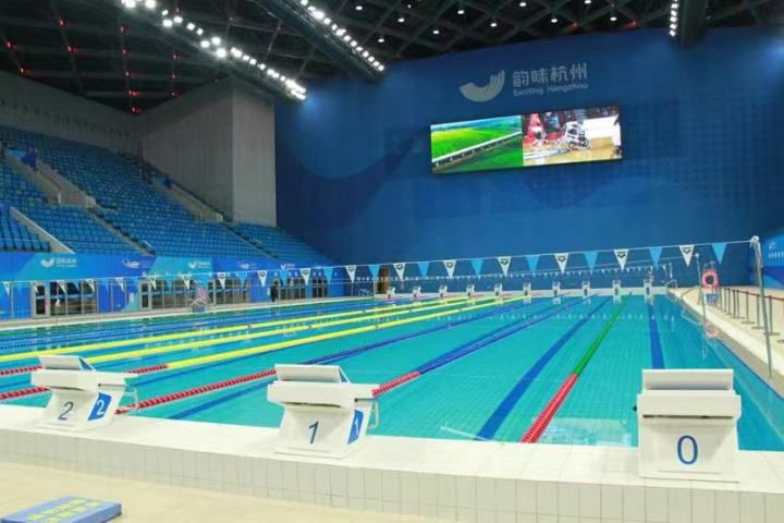 先进的水循环系统效果如何?杭州市节水义务监督员何星佑算过一笔账,标准游泳池一池水有2000吨,按常规操作一个月换4次水来计算,一年下来就要产生9.6万吨用水消耗。而奥体中心游泳馆的比赛池蓄水量为3750吨,同样用此方法计算,不计入蒸发等损耗,使用水处理系统后,一年下来可节省18万吨水,相当于4000余名杭州人一年的用水量。