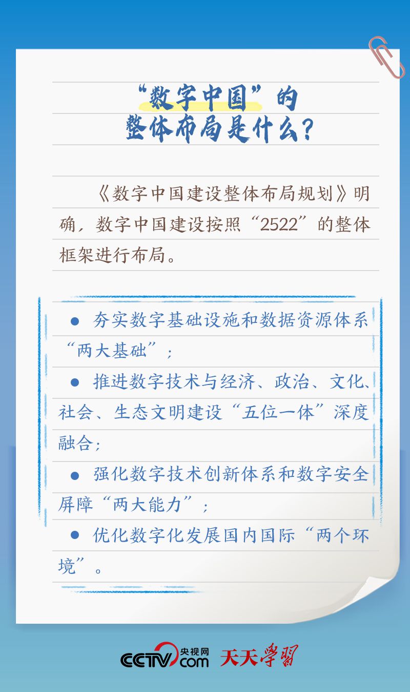 当今世界,信息技术创新日新月异,数字化、网络化、智能化深入发展。党的十八大以来,习近平总书记曾多次明确强调推进“数字中国”建设。什么是“数字中国”?怎样建设“数字中国”?央视网《天天学习》特整理学习笔记,与您一起学习。