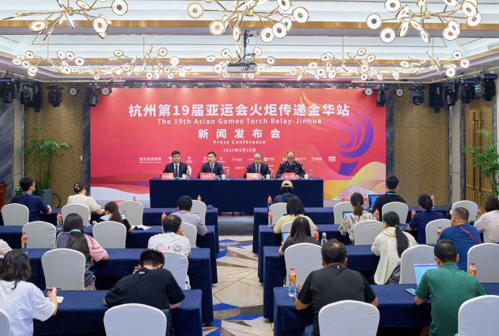 9月16日,杭州第19届亚运会火炬传递金华站新闻发布会举行,介绍火炬传递金华站有关筹备工作情况。