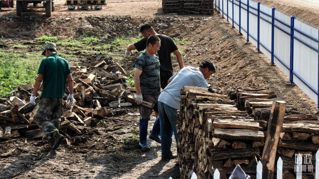 △黑龙江尚志市老街基乡龙王庙村,村民正在整理家中被水冲垮的柴火垛。今年9月,习近平曾到该村考察。(总台央广记者潘毅拍摄)
