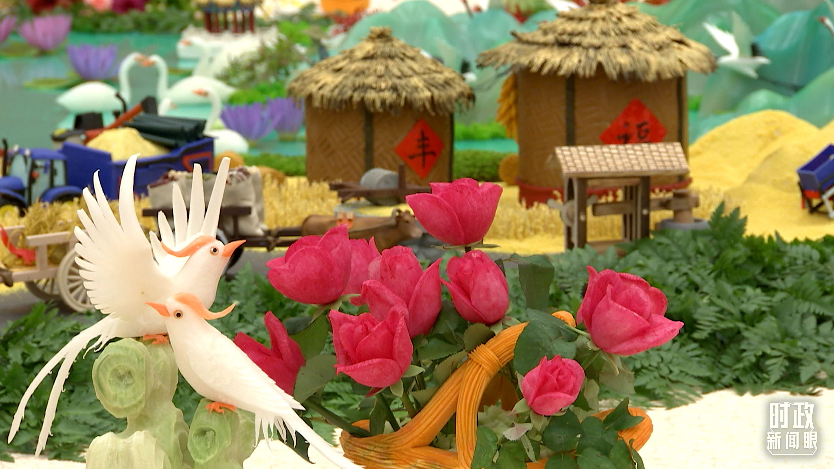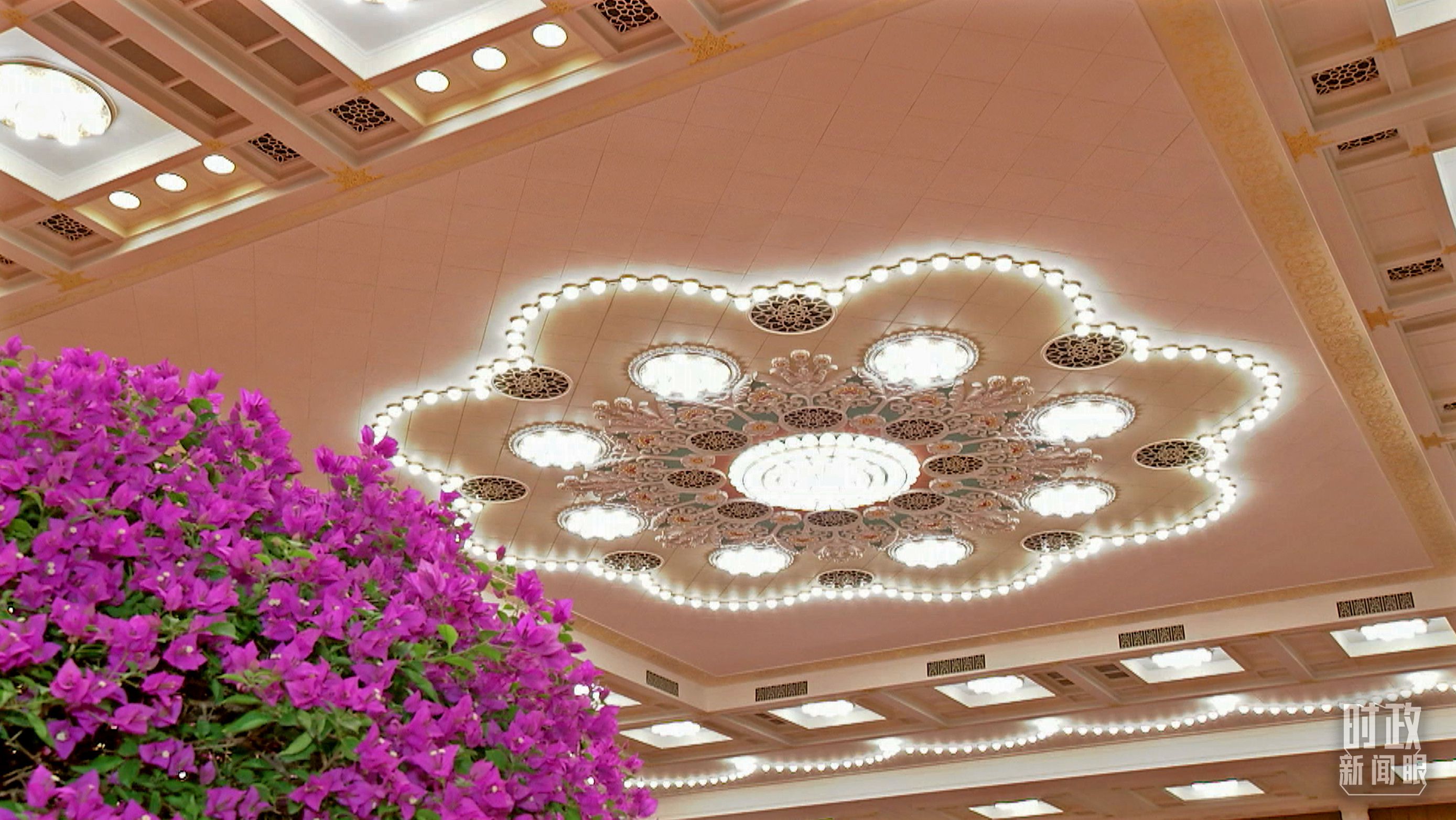 △人民大会堂宴会厅,华灯璀璨、鲜花绽放。