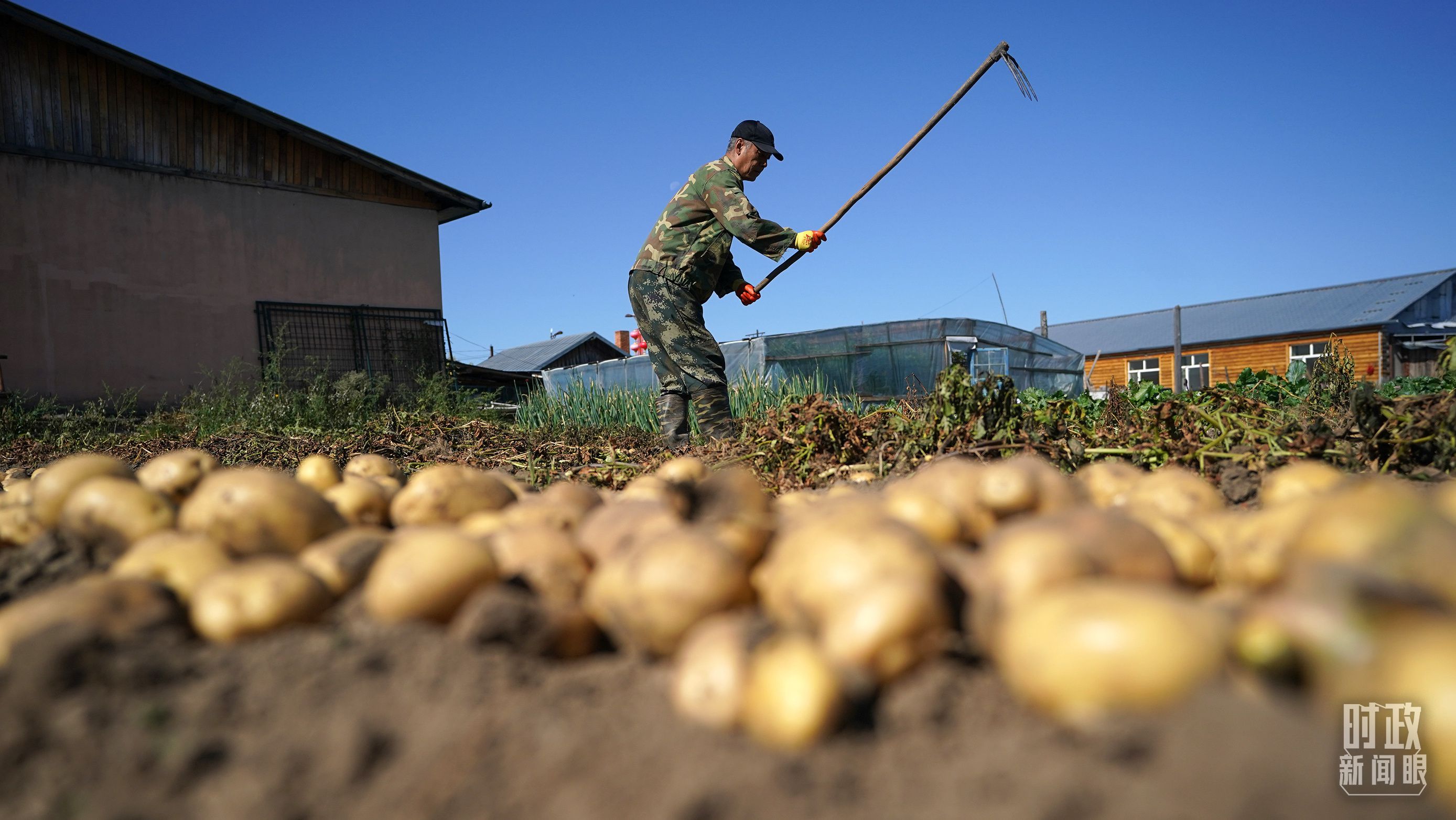 △位于我国大陆最北端的北极村村民正忙着采收自家土豆。(总台国广记者李晋拍摄)