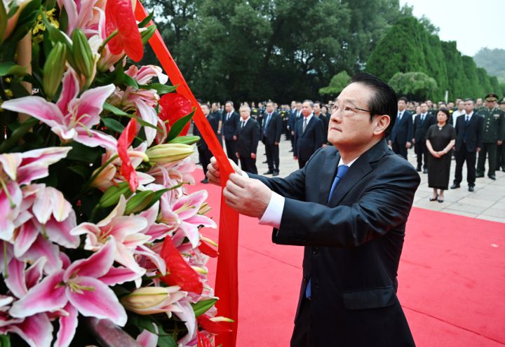 9月30日上午,省和杭州市党政军领导与社会各界代表一起,在杭州云居山浙江革命烈士纪念碑前举行向烈士敬献花篮仪式,追忆英烈事迹,感悟革命精神,汲取奋斗力量。潮新闻记者 胡元勇 摄