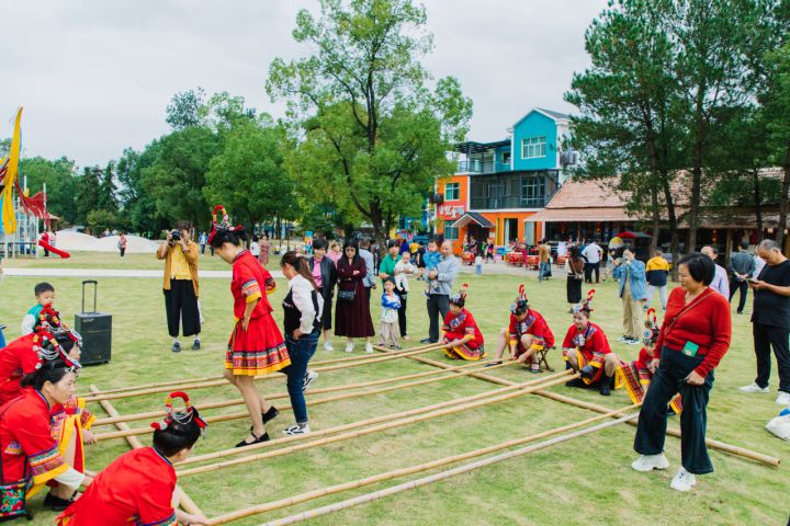 漫步在村里,不时传来游客阵阵欢笑声。在畲族体育游戏活动区,游客跟着村民打麻糍、抛茶青,体验着畲民的生活生产劳作。在另一边的草坪上,伴随着竹竿撞击的节拍,村民雷利群灵巧地跳起了竹竿舞,欢快的氛围吸引游客纷纷加入欢跳起来。“跳竹竿舞既是表演,也是我生活的一部分。”雷利群说,随着游客越来越多,村里专门组建了山歌队、舞蹈队等文艺队伍,每逢周末或者重大节假日,都会组织开展畲族婚嫁、畲族山歌等民俗文化表演。“一场表演最多的时候需要60多个村民参加,每人有80元~100元不等的演出费。”