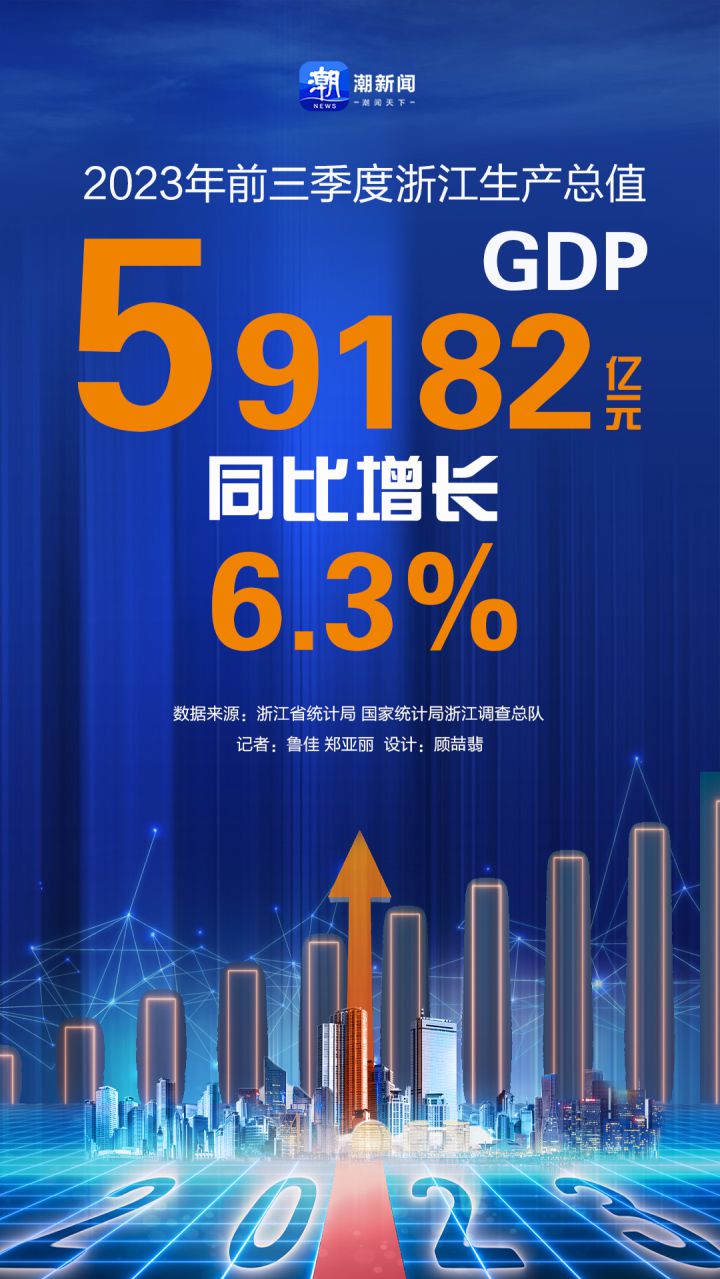 10月21日下午,省统计局、国家统计局浙江调查总队发布前三季度浙江经济运行情况。前三季度浙江生产总值59182亿元,按不变价格计算,同比增长6.3%。