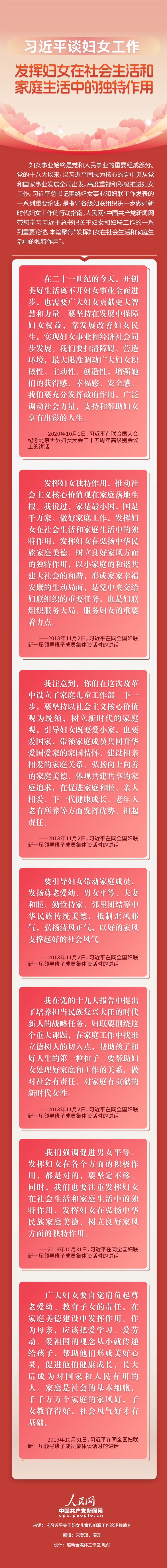 习近平谈妇女工作:发挥妇女在社会生活和家庭生活中的独特作用